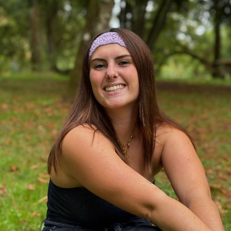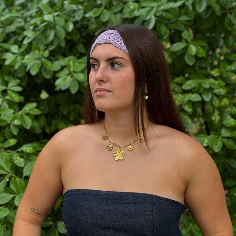 Bandeau en crochet violet fait à la main à La Rochelle en coton recyclé