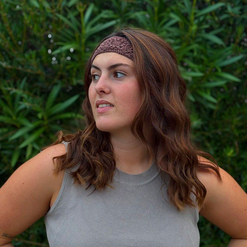 Bandeau marron en crochet idéal pour l'automne, en coton recyclé, fait à la main à La Rochelle