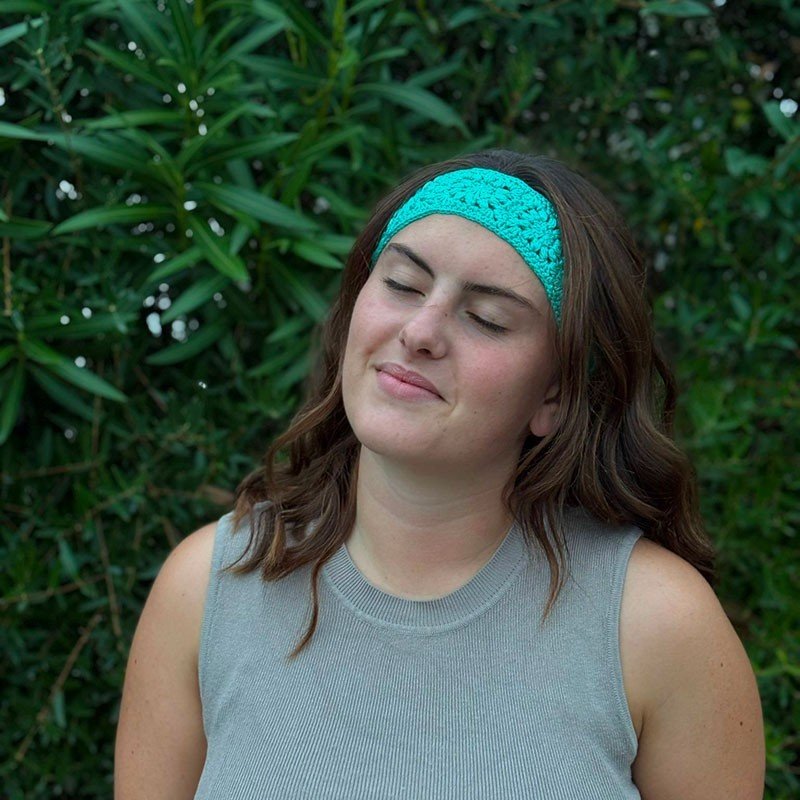 Bandeau en crochet couleur turquoise fait main à La Rochelle, en coton recyclé